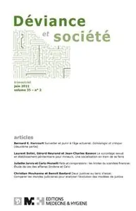 Volume 35, Issue 2 Vol. 35, 2011/2 - pagesPages 163 to 194Challenging the Actuarial Method in Penal SystemsBy Bernard E. HarcourtPages 195 to 215Excessive Gender-Based Coding in a Prison Institution for MinorsBy Laurent Solini, Gérard Neyrand, Jean-Charles BassonPages 217 to 238Facts and Conspiracies: The Limits of a Financial ScandalBy Juliette Jarvis, Carlo MorselliPages 239 to 260Testing Two Models of JusticeBy Christian Mouhanna, Benoit Bastard