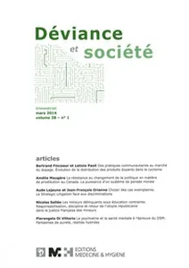 Volume 38, Issue 1 VariaVol. 38, 2014/1 - pagesPages 3 to 27Communitarian Policies in Relation to Doping MarketsBy Bertrand Fincoeur, Letizia PaoliPages 29 to 53Resistance to Policy Changes in Relation to Prostitution in CanadaBy Amélie MaugèrePages 55 to 76The Use of « Strategic Litigation » in Relation to Discrimination in BelgiumBy Aude Lejeune, Jean-François OriannePages 77 to 101Juvenile Delinquents Educated Under ConstraintBy Nicolas SalléePages 103 to 121Psychiatry and Mental Health Examining DSMBy Pierangelo Di Vittorio