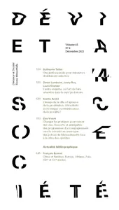 Volume 45, Issue 4 Vol. 45, 2021/4 - pagesPages 519 to 550Doubly selective juvenile criminal justiceBy Guillaume TeilletPages 551 to 579The other inquiry, or the art of being careful, in offenders on probation supervisionBy Daniel Lambelet, Jenny Ros, Laure KloetzerPages 581 to 611The image of the city and prostitution. Economic attractiveness or echoes of morality?By Sophie AndréPages 613 to 644Changing practices to save lives. The dynamics and ambiguities of diversion programs implemented by police departments to address the opioid crisisBy Elsa Vivant, translated by Liz Carey-LibbrechtPages 645 to 662Crime and famines Europe, Africa, Asia, 19th and 20th centuriesBy François Bonnet