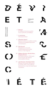 Volume 44, numéro 1 Vol. 44, 2020/1 - pagesPages 3 à 4En défense du service public de la recherche scientifiquePages 7 à 9Christophe AdamPages 11 à 48Injures raciales et condition sociale d’après les enquêtes françaises de victimationPar Sébastien DelarrePages 49 à 81Assignation à domicile et autorisation(s) de sortie dans un ordre négociéPar Elsa EuvrardPages 83 à 110Les pleins pouvoirs ? Éléments de sociologie des arbitres de football en FrancePar Williams Nuytens, Nicolas Penin, Grégoire DuvantPages 111 à 141Éduquer les jeunes délinquants en centre pénal : des motifs de placement au cœur de dynamiques complexesPar Jean Sanzane, Dominique Bodin
