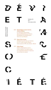 Volume 48, numéro 4 Vol. 48, 2024/4 - pagesPages 441 à 442Pages de débutPages 443 à 474La répression financière des manifestations en France. Mobilisations pandémiques, de la rue au tribunalPar Émilie Biland, Cyrine Gardes, Jérôme PélissePages 475 à 505Adopter le point de vue d’autrui : le vol à main armée d’après leurs auteurs à Rio de Janeiro, BrésilPar Diogo Silva CorrêaPages 507 à 539L’anti-complotisme croit-il à ses mythes ? La lutte contre le conspirationnisme à l’épreuve de sa mise en œuvrePar Gilles FrigoliPages 540 à 542Pages de fin